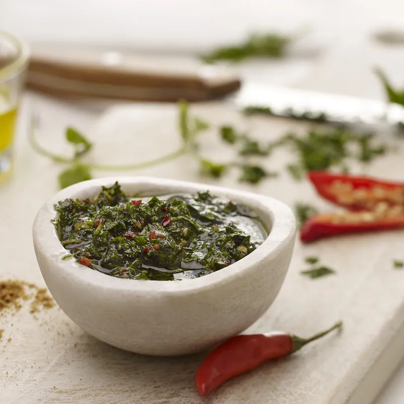 La salsa Skhug, un condimento muy popular en Oriente Medio, añade un toque de sabor en forma de salsa picante. Los ingredientes tradicionales, como el comino y cardamomo, se combinan con guindillas picantes tailandesas “ojo de pájaro”, hierbas frescas, aceite de oliva y zumo...