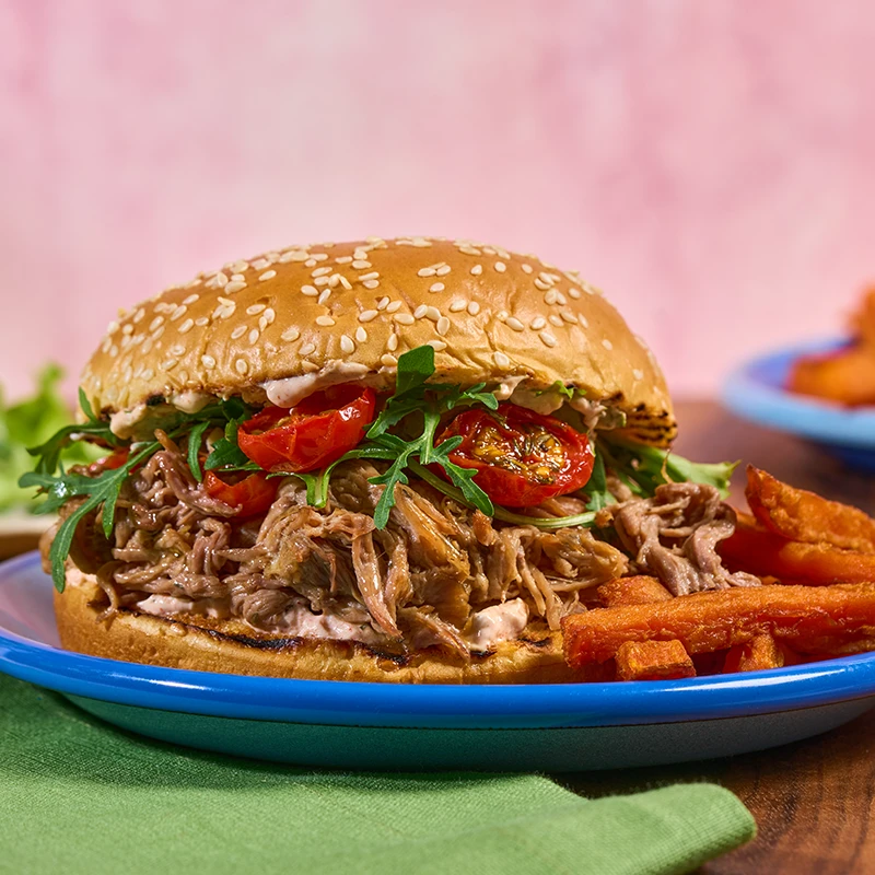 Qui n’aime pas un bon burger?? Celui ci, à l’effiloché d’agneau, avec sa sauce yaourt au paprika fumé ultra crémeuse… vous allez vous régaler?!