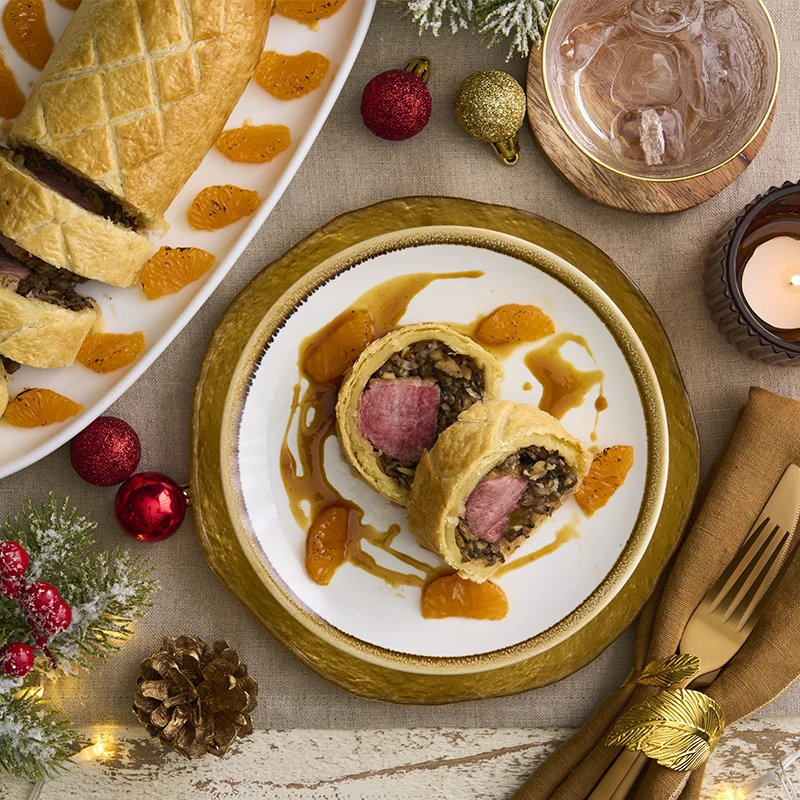 - 6 A la sortie du four, laissez les magrets en croute reposer 5 min avant de les couper. Servez avec les clémentines poêlées et la sauce aux clémentines.
