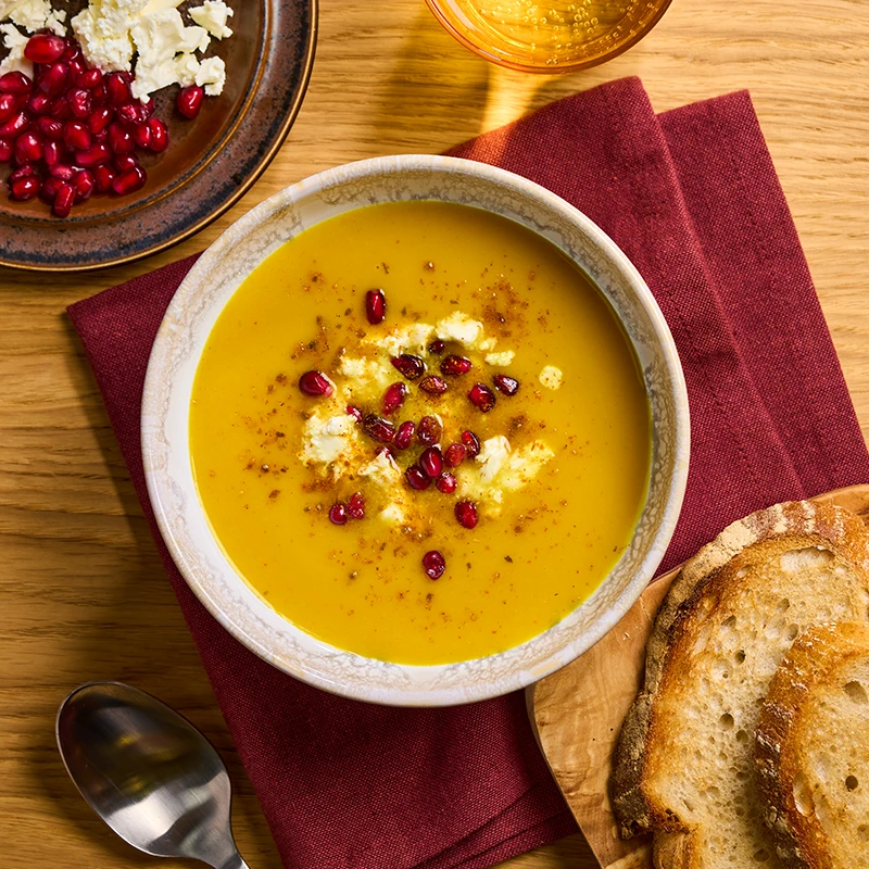 - 7 Dressez le tout dans une assiette creuse et parsemez de feta émiettée et de graines de grenade.